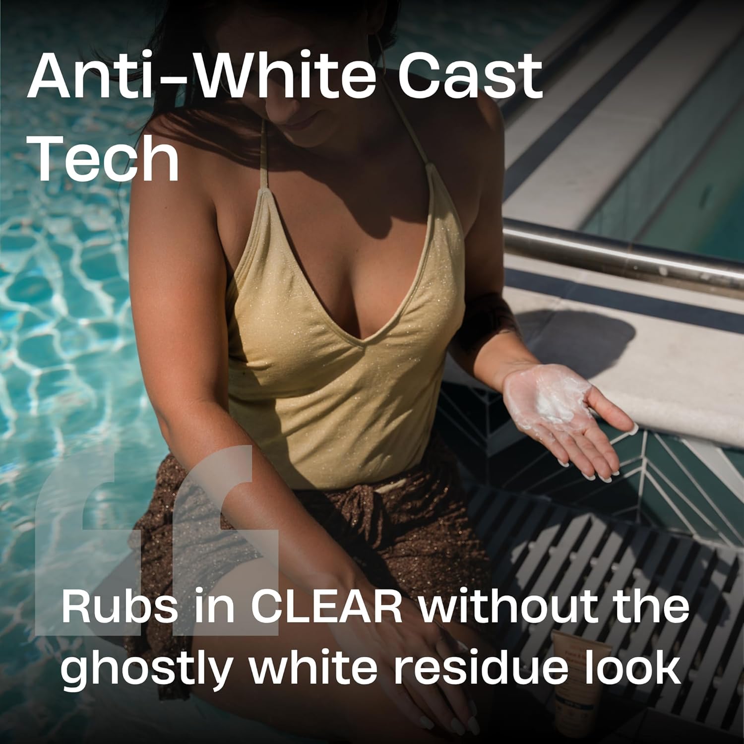 - Anti-White Cast Tech means strong UV protection with less embarrassing white residue common in other mineral sunscreens.